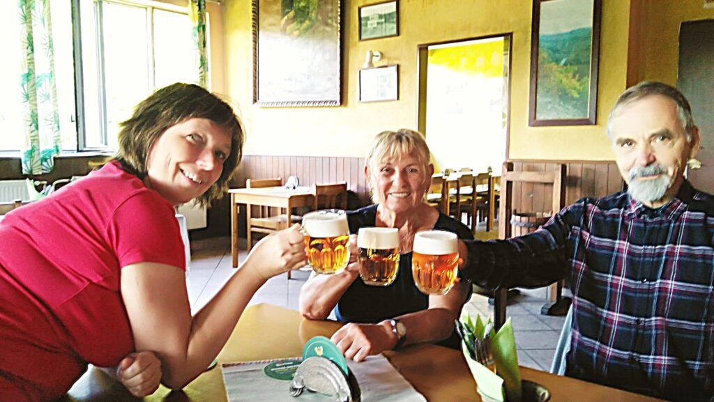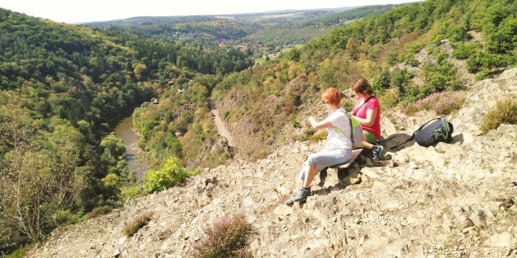 V neděli 7. září vyrazili 4 členové našeho odboru na vycházku Posázavím. Vlakem jsme nejprve dorazili do stanice Luka pod Medníkem. Hned na úvod nás čekal náročný sestup k Sázavě kolem chat přilepených ke svahu. Cestou kolem Sázavy jsme obdivovali chatky v krkolomných polohách nad protější skálou, prošli jsme Spojené osady Údolí slunce a o trochu mírnějším stoupáním jsme se vrátili do Luk. V Hospodě u nádraží jsme se posilnili na další cestu a vyrazili jsme do Petrova u Prahy. Turistické značky nás dovedly habrovým lesem na skalní vyhlídku Třeštibok. Pod námi se vinula Sázava provázená tratí Posázavského pacifiku. Jediným problémem vyhlídkového místa byly „nastražené“ uvolněné lavičky, které některých členkám přivodily pád a drobné oděrky, naštěstí jediná zranění na trase. Dále jsme pokračovali lesíkem (tentokráte dubovým) do Petrova, kde jsme nemohli vynechat místní cukrárnu. Pak už nás čekal jen ostrý sestup k vlakové zastávce. V Praze na hlavním nádraží jsme na poslední minutu stihli přípoj na Poděbrady, také díky průvodčímu, který telefonem upozornil kolegu v rychlíku, aby nám neujel před nosem. V Poděbradech jsme byli už v pět hodin, celkem jsme ušli 9 km.