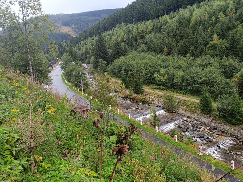 Nejprve jsme navštívili dvě informační střediska, potom jsme podle Lučního potoka šli do kopce ke skiareálu Javor, zpět podle Vlčího potoka a podle Úpy k lanovce na Sněžku. Ta ovšem jezdila jen na Růžovou horu, tak jsme ji nepoužili. Pokračovali jsme k autobusu do Svobody a odtud vlakem do Poděbrad, kam jsme dorazili 18 hod. V Peci při příjezdu nás přivítalo sluníčko a potom střídavě kapky deště.