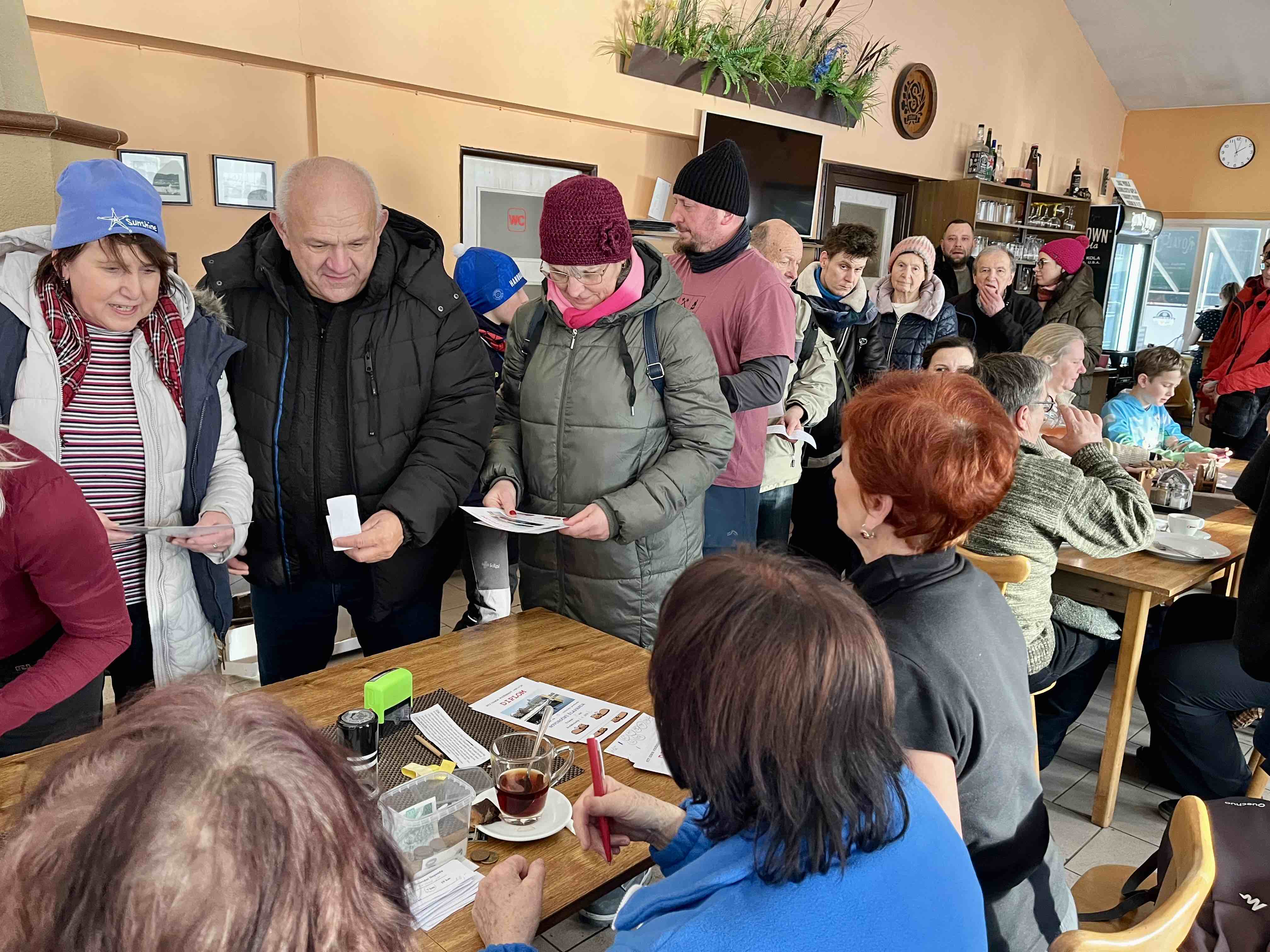 Ani chladné a podmračené počasí neodradilo příznivce pohybu, kteří chtěli nový rok zahájit opravdu aktivně. Jejich nadšení pro turistiku nás překvapilo a potěšilo. Jako odměnu si všichni zasloužili tradiční diplom a sušenku, nově pak turistickou vizitku. Novinkou byla registrace psů z iniciativy Evy Formánkové, která pro pejsky přichystala také buřtíky.