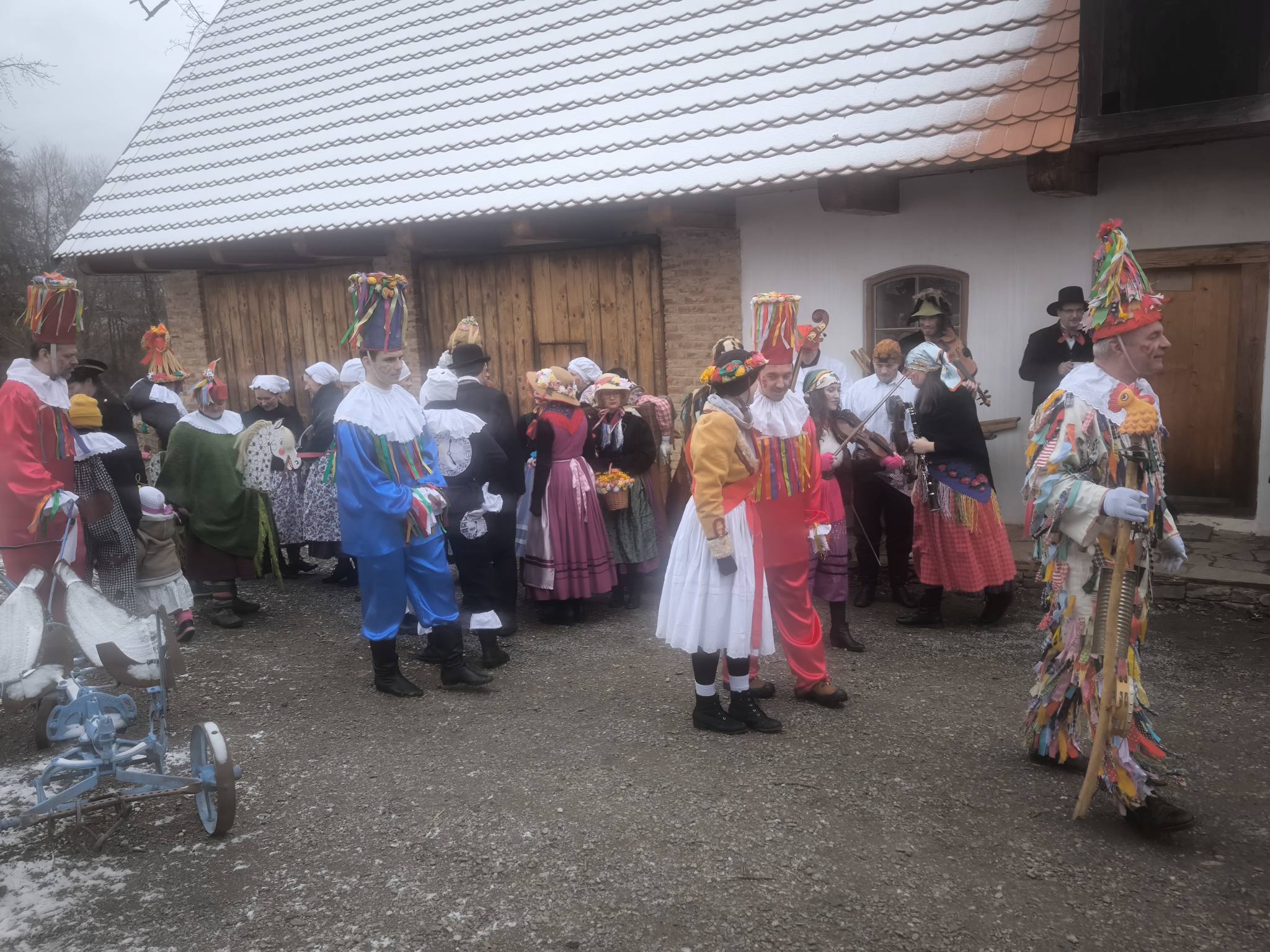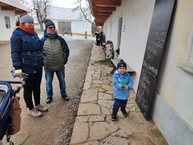 V neděli 15.2. ráno se nás v poděbradské vlakové hale sešlo 7 členů KČT a dalších 7 zájemců o výlet za poznáváním lidových tradic. Počasí nám krásně vyšlo. Bylo výrazně lepší, než předvídala meteorologická předpověď. Vlak dorazil bez zpoždění a tak jsme společně ve skupince 14-ti lidí mohli vyrazit. Cesta probíhala s veselou náladou a hladce, dokonce v letošním roce nebyla ani žádná fronta na vstupenky do národního skanzenu. Mohli jsme si tak naplno užít pravý masopustní rej, jak jej znaly už naše babičky a dědečkové. A to hned 2x, neboť jsme dorazili do cíle brzo. K vidění zde byly barevné masky, lidové písničky, vesnická zabijačka, výroba tradičních koláčů a milá atmosféra. Setkání s panem rychtářem nám připomnělo, jak důležité je uchovávat české tradice. Po vydatném obědě jsme cestou zpět nezapomněli ani na návštěvu cukrárny v Kouřimi. Zpáteční cesta proběhla v pohodě a dobré náladě, nechyběl smích, povídání ani společné sdílení všech zážitků.