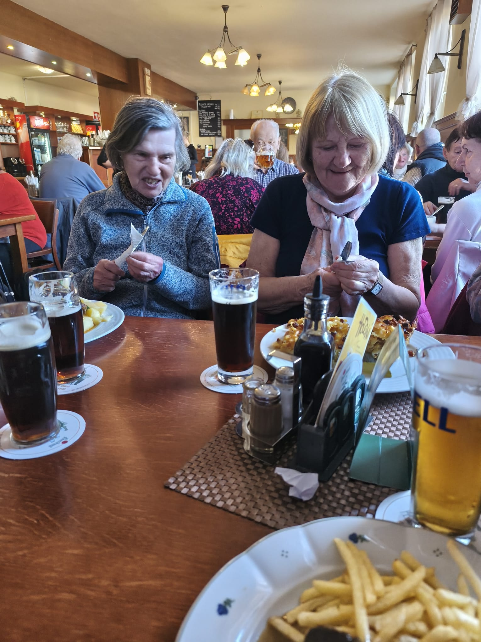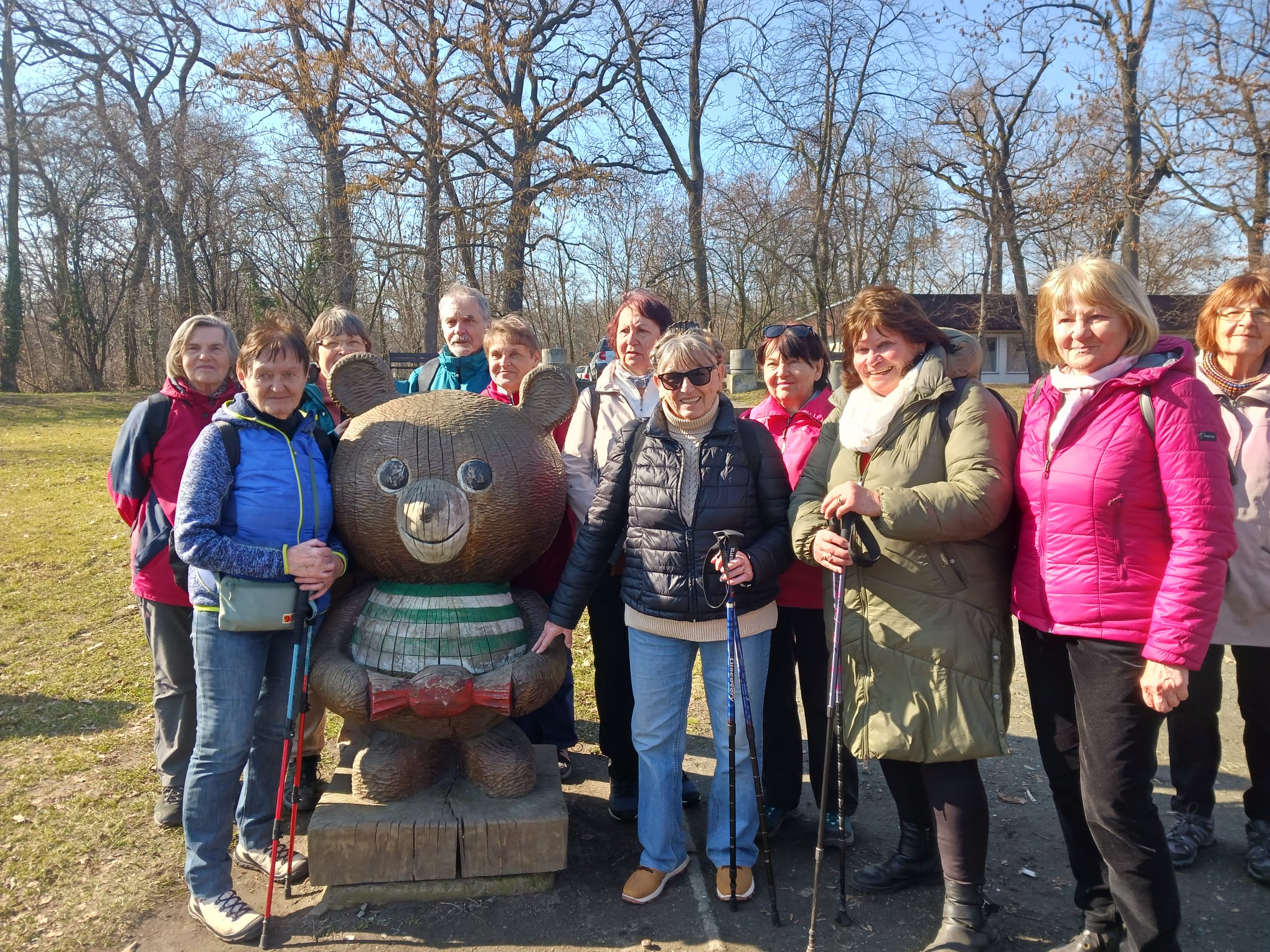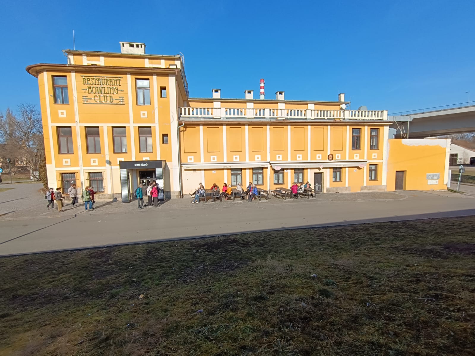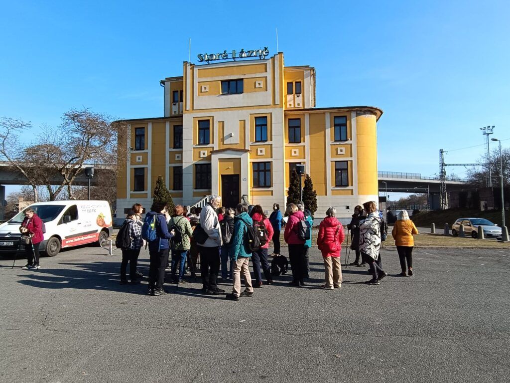 Za krásného předjarního počasí jsme pokračovali po břehu Labe a dále po přírodní naučné stezce Borky, kde jsme podle pokynů na informačních tabulích se zaujetím luštili přírodovědné úkoly. Na konci stezky jsme si udělali foto s populárními medvědy, kteří se „potkali u Kolína“, a přesunuli jsme se do objednané restaurace na Zimním stadionu. Po obědě jsme vyšplhali na návrší s gotickou věží Práchovnou s pěkným výhledem na město. Po skalní pěšince jsme sestoupali k Masarykovu mostu (1927, arch. Roith) s malou vodní elektrárnou. Z mostu jsme měli výhled na tepelnou elektrárnu (1932, arch. Fragner) z roku 1932 s nejvyšším zděným mostem v republice (pův. 120 m, nyní 117 m). Za mostem jsme sešli vlevo k bývalým městským lázním, kde se nás ujal současný majitel objektu Mgr. Petr David. Zasvěceně nás informoval o historii objektu a jeho rekonstrukci v letech 2001-2005. V místech bývalého plaveckého bazénu a prádelny je dnes kulturní sál, taneční parket a prostory pro diskotéky.