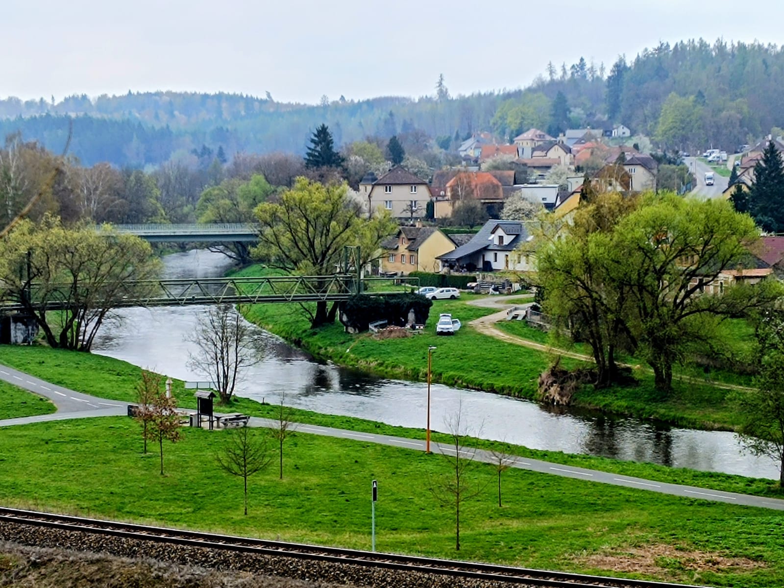Ve středu dne 15. dubna 2026 jelo 9 členů našeho odboru na výlet podle řeky Sázavy do Zruče. Jeli jsme přes Prahu a potom jsme chtěli pokračovat vlakem podle Vltavy, vzhledem že nenavazoval vlakový spoj, pokračovali jsme přímým spojem do Čerčan a potom jsme pokračovali podle řeky do Zruče nad Sázavou, kde jsme vystoupili na zastávce. Cestou na náměstí jsme šli do restaurace na oběd a potom do zámeckého parku, kde jsme navštívili vodácké muzeum. Potom jsme přešli do staré Zruče. Měli jsme dost času, tak jsme před odjezdem vlaku ještě navštívili restauraci a přes Světlou a Kutnou Horu jsme v 17.34 hod. přijeli do Poděbrad. Ušli jsme 7 km, jedna turistka, která navštívila rozhlednu, našlapala 11 km. Počasí bylo jako stvořené na pěkný výlet.